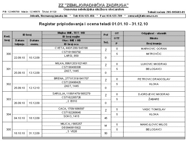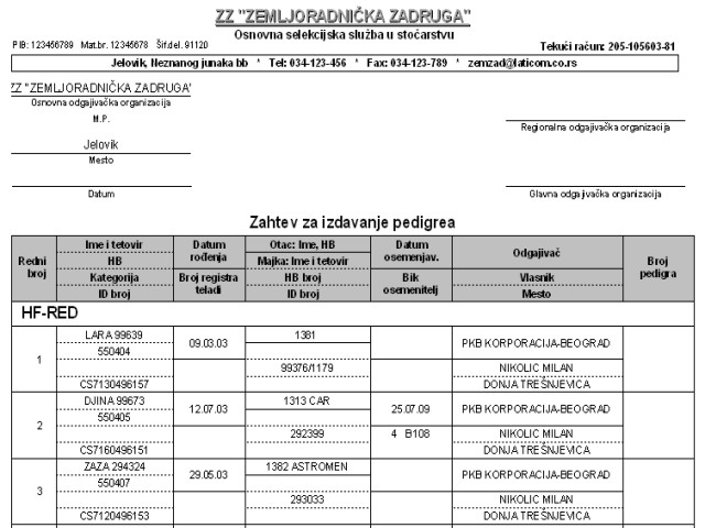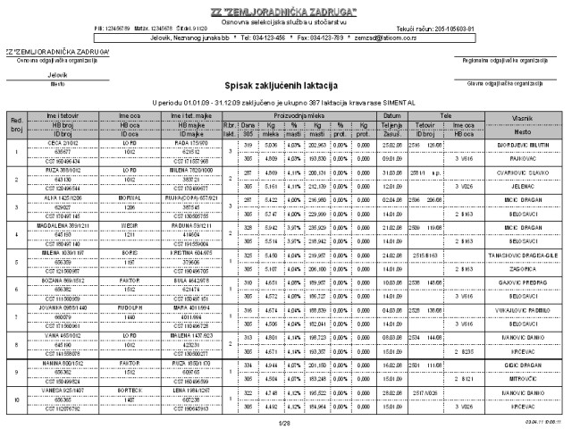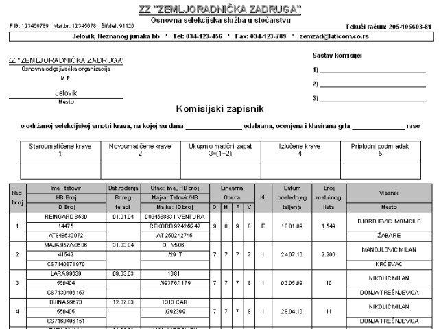 Sva izveštajna dokumentacija koja ide prema regionalnim i glavnoj selekcijskoj službi, dobija se na veoma jednostavan način i u obliku kakav zahteva Institut za stočarstvo.
