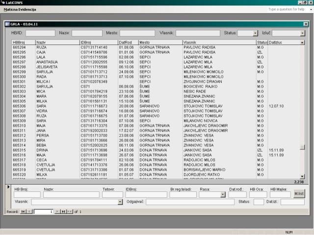 LatiCOWS u potpunosti ispunjava sve kriterijume koje zahtevaju Glavni odgajivački program i novi obrazaci matične evidencije. Program sam radi obračun laktacija po ICARu AT4 metodom, obračunava laktaciju TIM i daje njen prikaz na svim obrascima Matične evidencije.